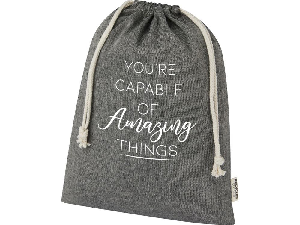 Подарочная сумка из хлопка, переработанного по стандарту GRS, с хлопковым шнурком для затягивания. Идеально подходит для подарков или хранения предметов. Размер: 30 x 42 см. -
