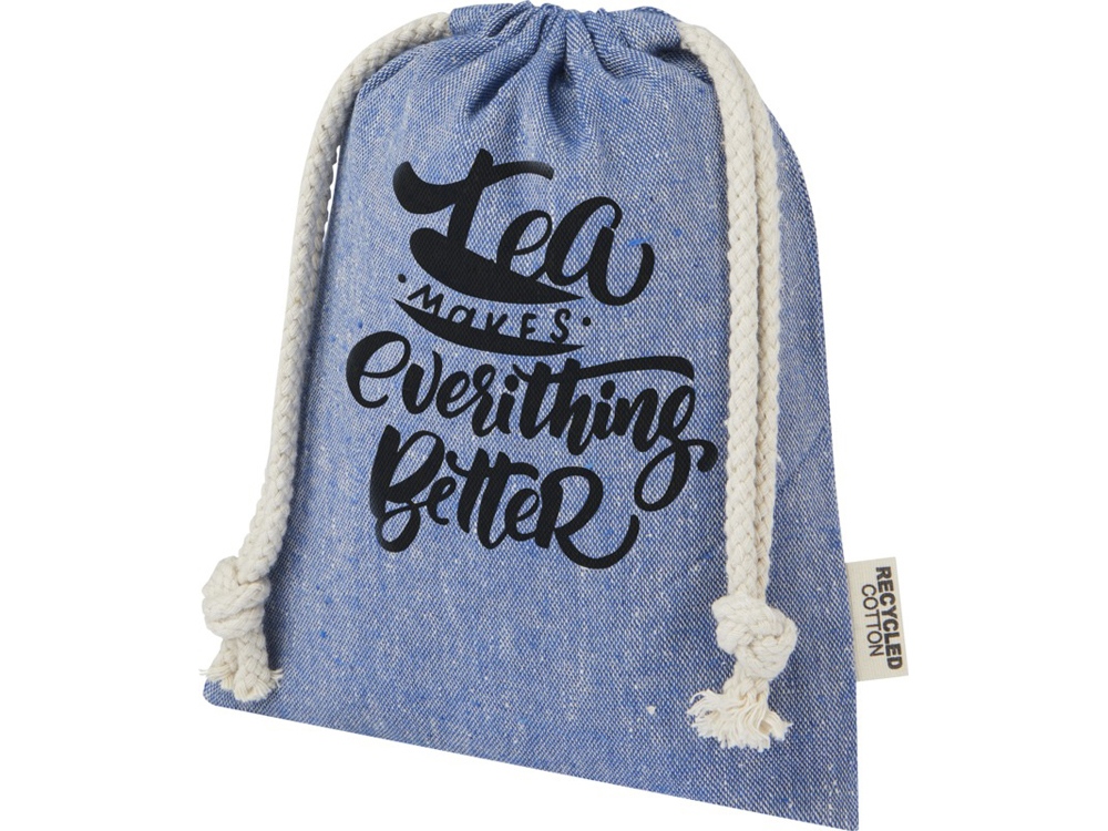 Подарочная сумка из хлопка, переработанного по стандарту GRS, с хлопковым шнурком для затягивания. Идеально подходит для подарков или хранения предметов. Размер: 15 x 20 см. -