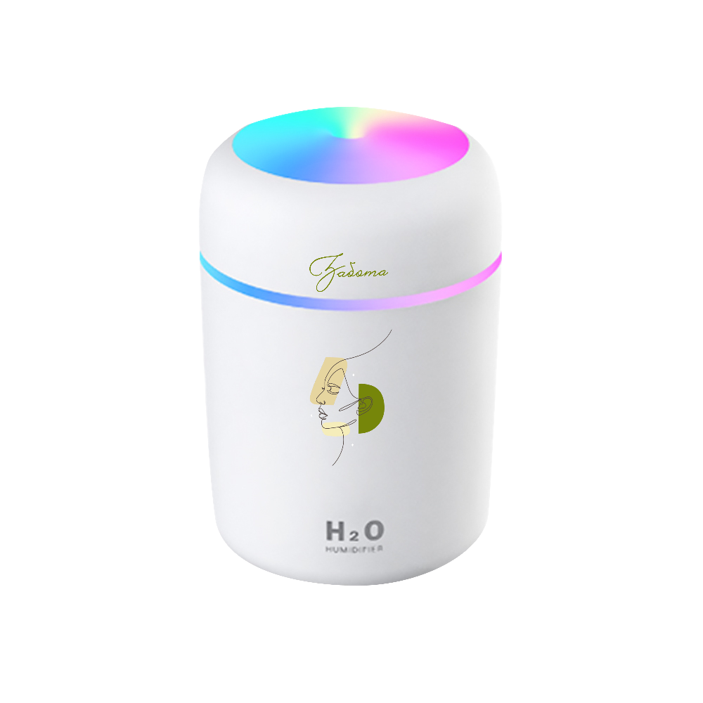 Светодиодный USB увлажнитель 2 в 1: увлажнитель и арома-диффузор AROMA, 7-ми цветовая динамическая радужная подсветка. Несколько капель эфирного масла на водорастворимой основе в воду увлажнителя, наполнит пространство ароматом и свежестью. Подходит для использования дома и в автомобиле. Источник питания: Usb Тип: Ультразвуковой увлажнитель Напряжение (V): 5,5 Емкость: 350 мл Контроль влажности: гигростат Мощность (Вт): 2 Размер индивидуальной упаковки: 8,5х8,5х12,5см/150 гр- Виды нанесений: УФ-печать А2, Круговая УФ-печать, Тампопечать большая, УФ-Лак, УФ-Цвет+Лак