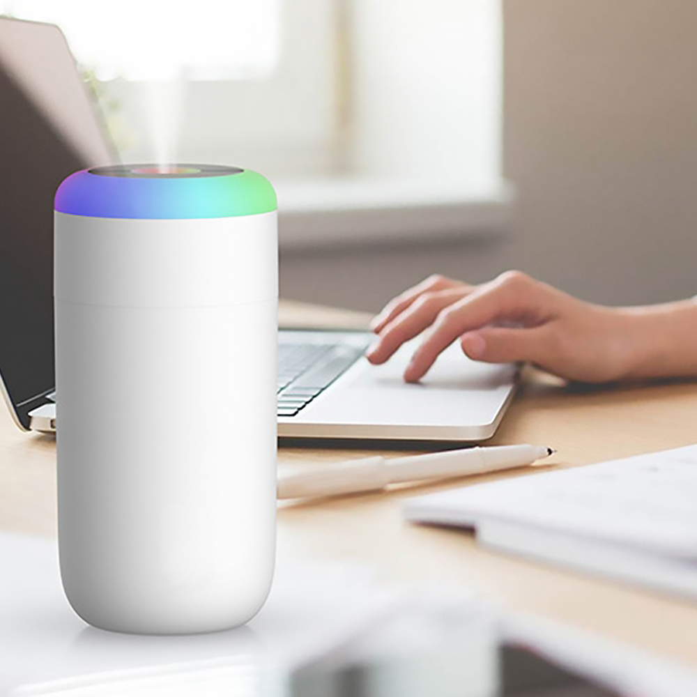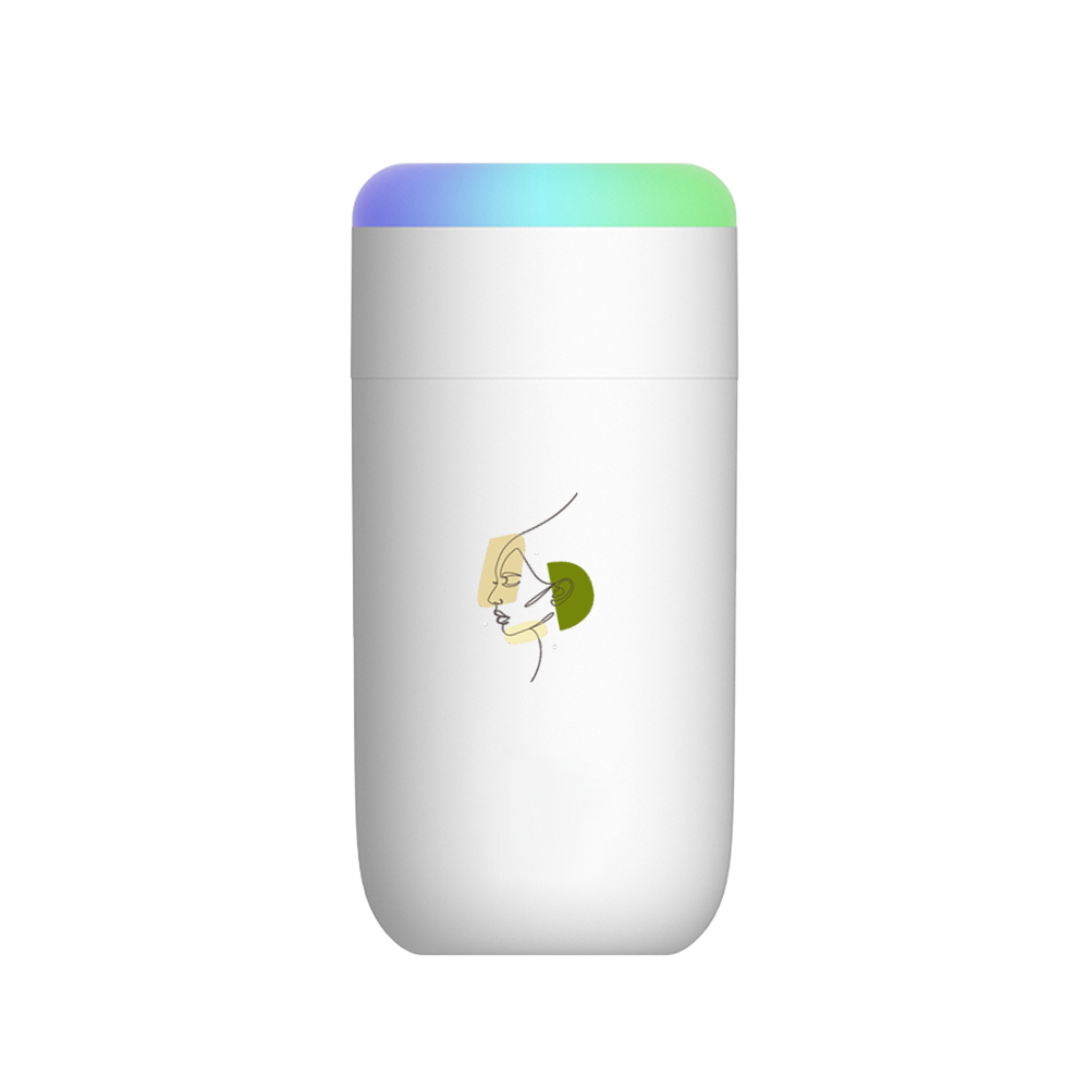 Светодиодный USB увлажнитель Огайо – ультразвуковой увлажнитель воздуха. 7-ми цветовая динамическая радужная подсветка. Добавьте в резервуар необходимое количество воды и несколько капель эфирного масла на водорастворимой основе, для наполнения пространства ароматом и свежестью. Подходит для использования дома и в автомобиле. Резервуар – 350 мл. Размер индивидуальной упаковки: 7,5*7,5*15,5см/176гр- Виды нанесений: УФ-печать А2, Тампопечать большая, УФ-Лак, УФ-Цвет+Лак