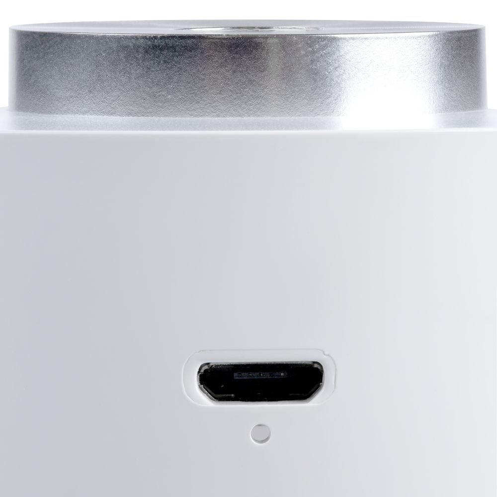 Компактный размер устройства позволяет разместить его на рабочем столе или даже в подстаканнике автомобиля. Встроенная батарея позволяет свободно перемещать устройство без привязки к розетке.