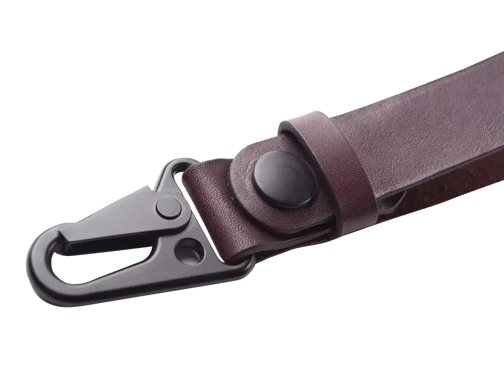 Ремешок сшит из прочной кожи коричневого цвета. Оборудован надёжным металлическим карабином, самопроизвольное расцепление которого невозможно. Ключи, прицепленные к нему, обречены вечно храниться в глубинах сумки или кармана джинсов, и у них нет ни единого шанса потеряться. Прицепить ремешок можно к шлёвке джинсов или к куртке. -