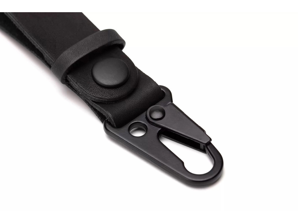 Ремешок сшит из прочной кожи чёрного цвета. Оборудован надёжным металлическим карабином, самопроизвольное расцепление которого невозможно. Ключи, прицепленные к нему, обречены вечно храниться в глубинах сумки или кармана джинсов, и у них нет ни единого шанса потеряться. Прицепить ремешок можно к шлёвке джинсов или к куртке. -