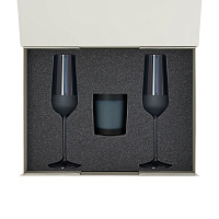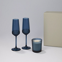 Подарочный набор свеча Enigma + 2 бокала для шампанского Sapphire в серой коробке