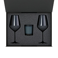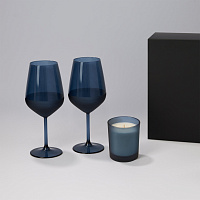 Подарочный набор свеча Enigma + 2 бокала для вина Black Edition в серой коробке