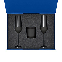 Подарочный набор свеча Enigma + 2 бокала для шампанского Black Edition в синей коробке