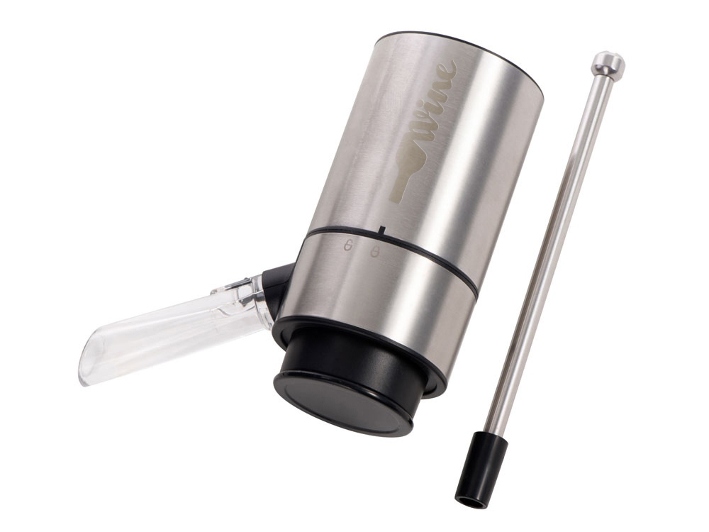 Автоматический аэратор от Master of Wine разливает вино по бокалам необычным образом: вам просто нужно установить его на горлышке бутылки и нажать на кнопку, и из трубки аэратора польется насыщенное кислородом вино.