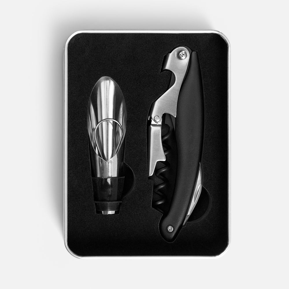 В набор входят:- нож сомелье с функциями штопора, ножа для срезания фольги и открывашки