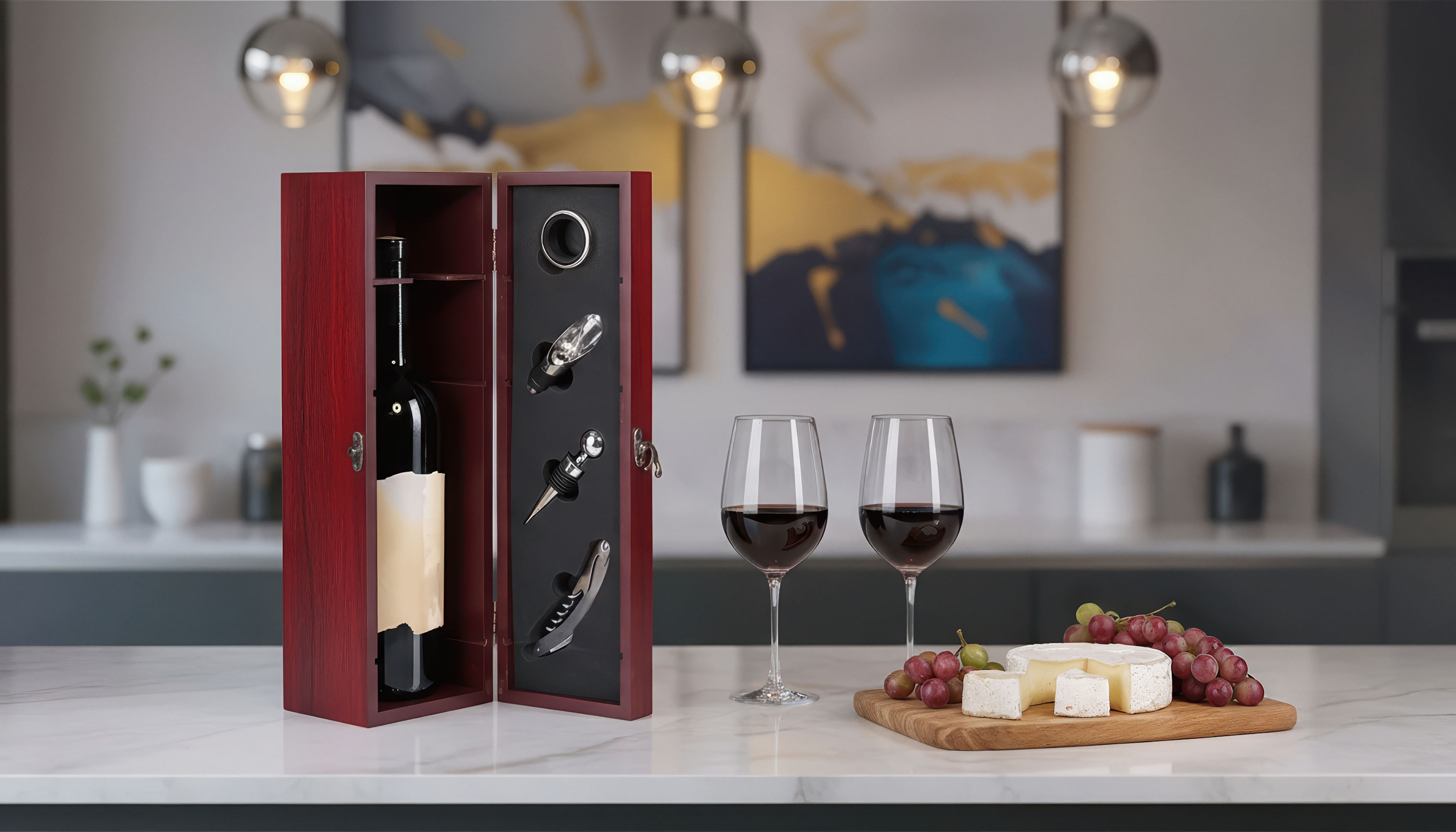 Подарочный набор для бутылки вина и винных аксессуаров - это универсальный подарок к любому празднику.