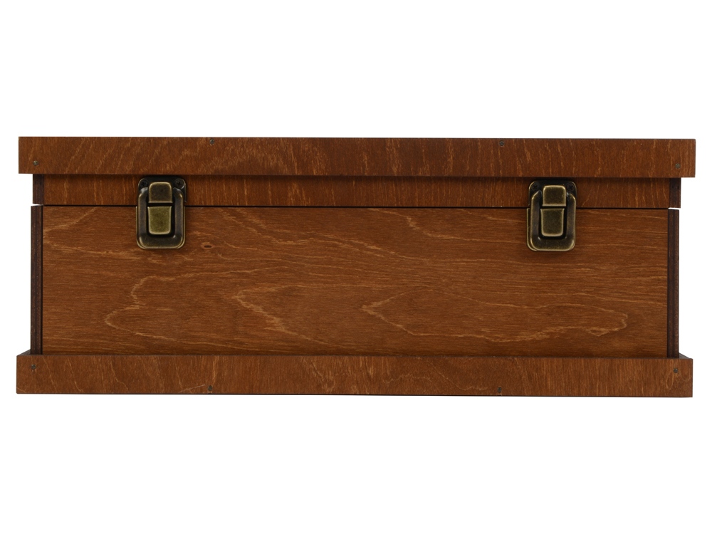 Подарочный набор придется по вкусу подлинным эстетам и ценителям вин. Для легких на подъем — в деревянном сундучке уместится все, что нужно для внезапного праздника: бутылка вина, пара бокалов, штопор, пробка и даже воротничок для бутылки. Удобство и безопасность переноски хрупких предметов обеспечивает наполнитель. Обратите внимание: комплектация подарка не включает в себя напиток — настоящие ценители предпочтут подобрать вино на свой вкус.
