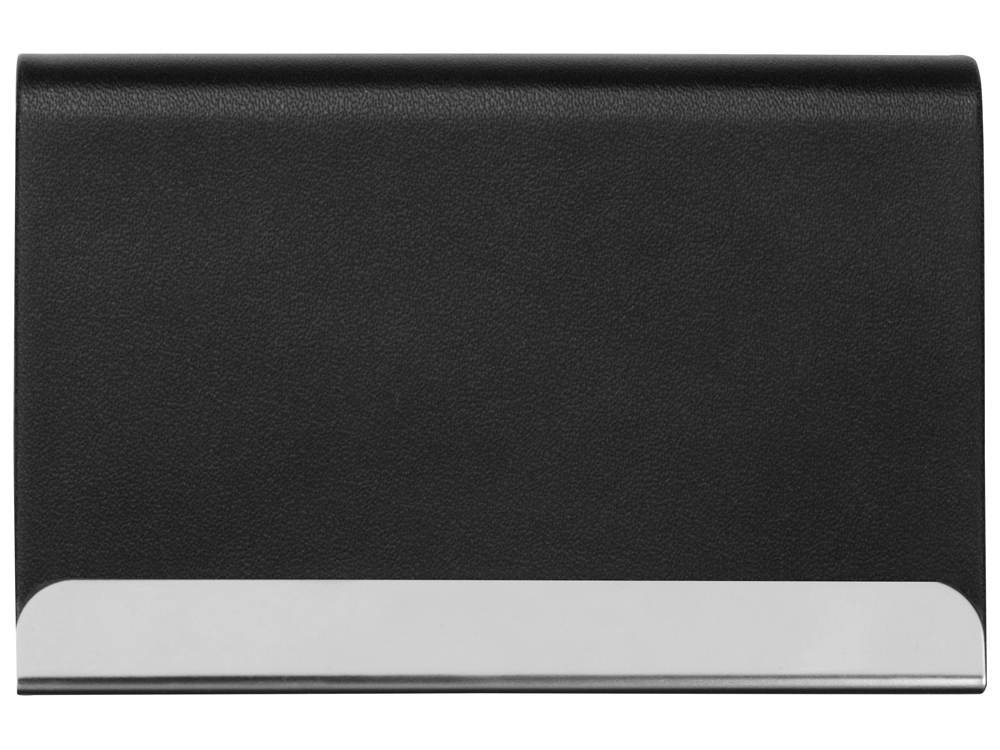 Классическая визитница в сдержанных цветах с хромированным декоративным кантом. Внутри отделана черным бархатом. Вмещает примерно 30 визиток. -