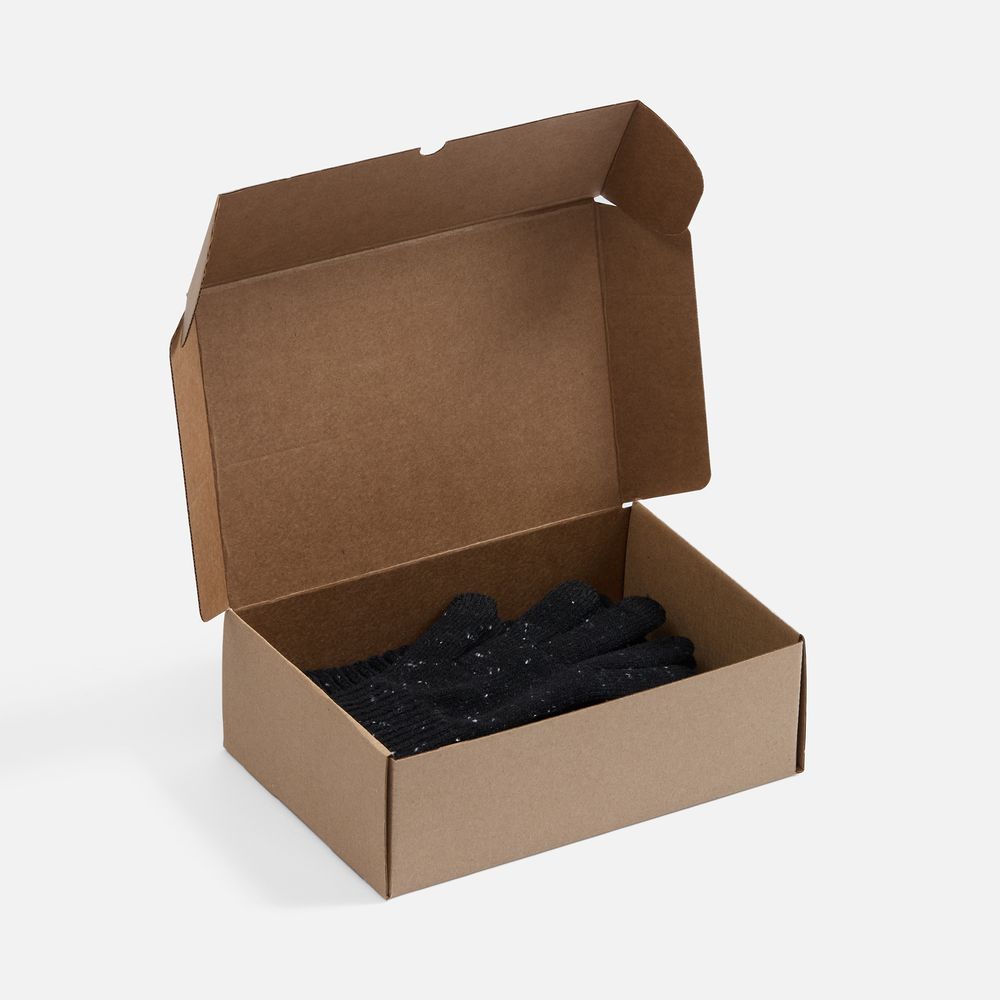шапка - акрил 94%; полиэстер 6%; перчатки - акрил 91%; полиэстер 6%; металлическое волокно 3%; коробка - микрогофрокартон