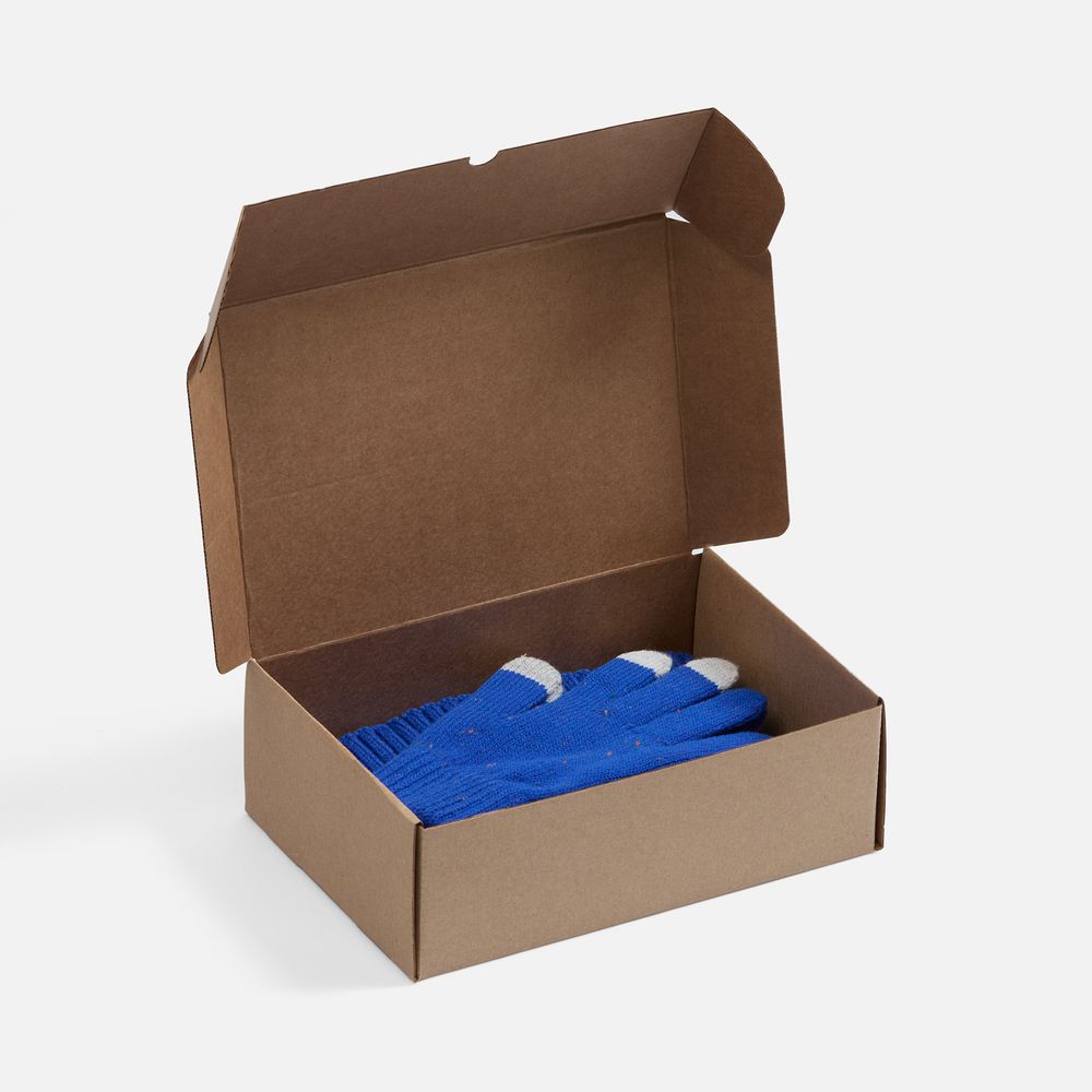шапка - акрил 94%; полиэстер 6%; перчатки - акрил 91%; полиэстер 6%; металлическое волокно 3%; коробка - микрогофрокартон