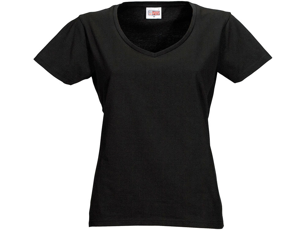 Женская футболка из натурального хлопка с элегантным V-образным вырезом. Материал отлично подходит для нанесения рекламной информации. Натуральная ткань не вызывает раздражения кожи. -