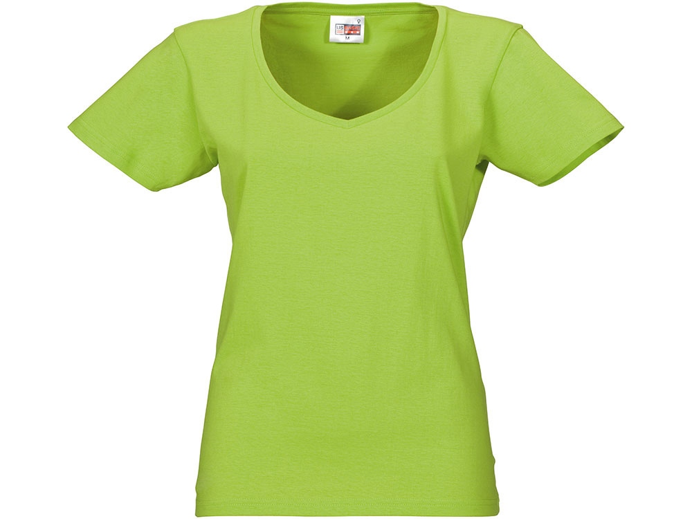 Женская футболка из натурального хлопка с элегантным V-образным вырезом. Материал отлично подходит для нанесения рекламной информации. Натуральная ткань не вызывает раздражения кожи. -