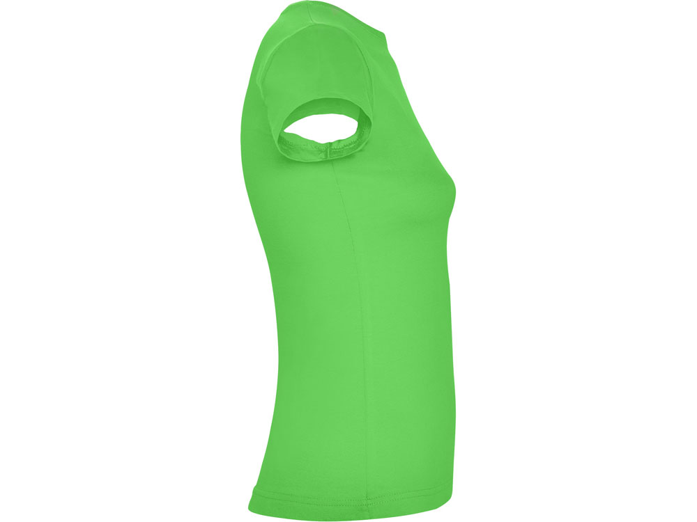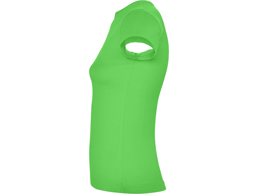 Приталенная женская футболка с боковыми швами и круглым вырезом горловины, двухслойный риб 1х1. Широкая цветовая палитра.
