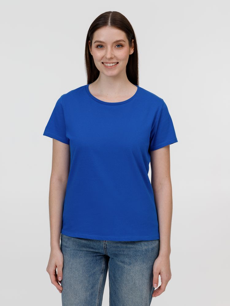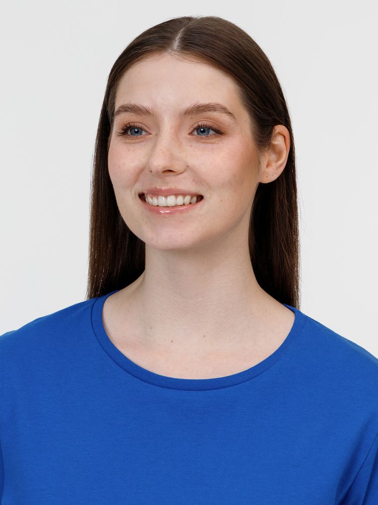 Кроеная женская футболка приталенного силуэта с круглым воротом.