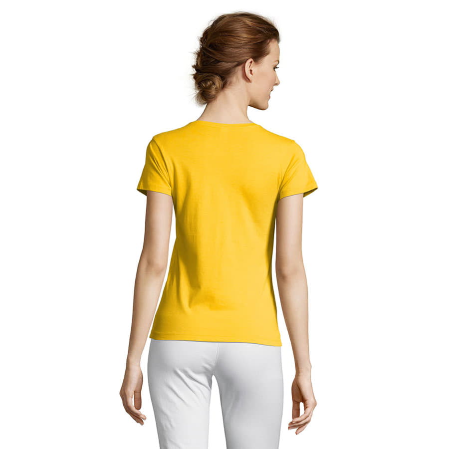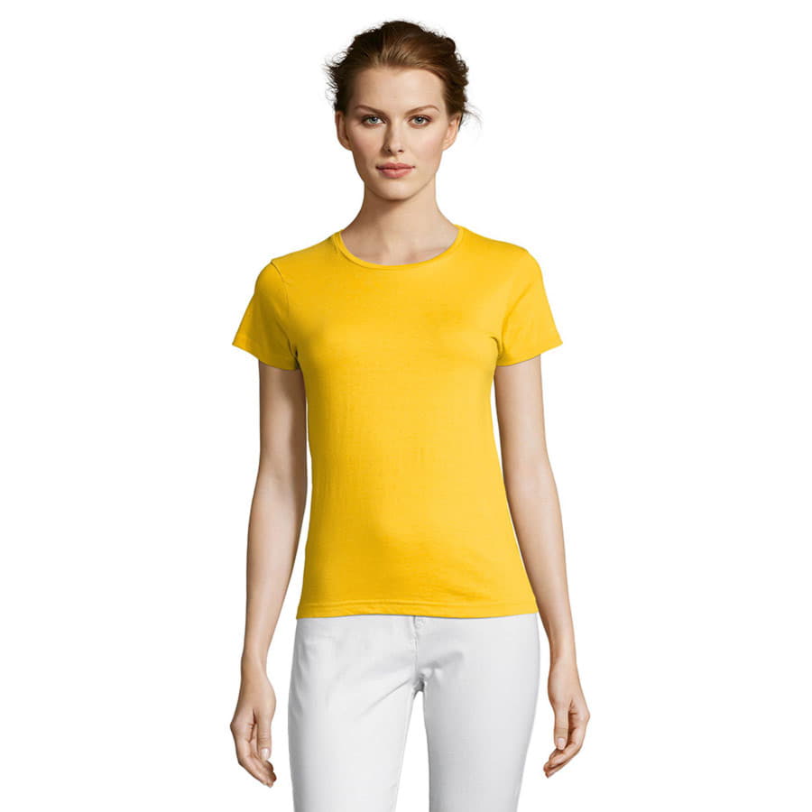 Цвет, близкий к Pantone 1225C Все мы знаем: чтобы увеличить узнаваемость компании, брендированные товары должны быть полезными, актуальными и качественными. Всем этим характеристикам отвечает футболка знаменитого французского бренда модной одежды SOLS. Miss — это базовая, комфортная и недорогая классическая футболка с фасонными (фигурными) швами для более женственной посадки из мягкого хлопкового полотна. Мягкость достигается за счет тонкой, но прочной пряжи, обеспечивающей приятные тактильные ощущения при носке.Горловина обработана изящным рибом (резинкой 1*1), проложены дополнительные укрепляющие строчки для предотвращения ее растяжения. 100% хлопок, классический крой, мягкость полотна и изящная посадка — все это делает футболку Miss настоящим бестселлером! -