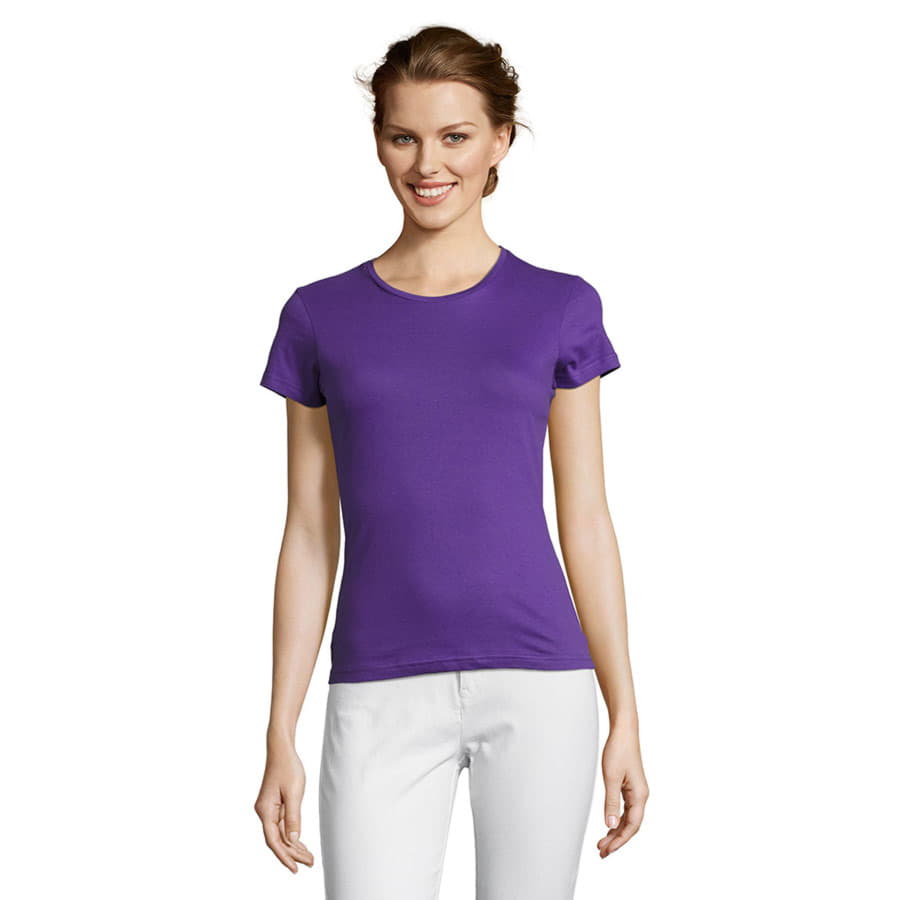 Цвет, близкий к Pantone 7672C Все мы знаем: чтобы увеличить узнаваемость компании, брендированные товары должны быть полезными, актуальными и качественными. Всем этим характеристикам отвечает футболка знаменитого французского бренда модной одежды SOLS. Miss — это базовая, комфортная и недорогая классическая футболка с фасонными (фигурными) швами для более женственной посадки из мягкого хлопкового полотна. Мягкость достигается за счет тонкой, но прочной пряжи, обеспечивающей приятные тактильные ощущения при носке.Горловина обработана изящным рибом (резинкой 1*1), проложены дополнительные укрепляющие строчки для предотвращения ее растяжения. 100% хлопок, классический крой, мягкость полотна и изящная посадка — все это делает футболку Miss настоящим бестселлером! -