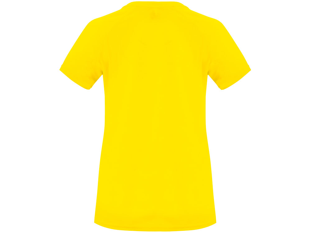 Спортивная футболка с коротким рукавом реглан для женщин. Круглый вырез горловины с отделкой плоским швом. Рукав сложного кроя для обеспечения дополнительного удобства при занятиях спортом. Отделка плоским швом с застилом по пройме и рукавам.