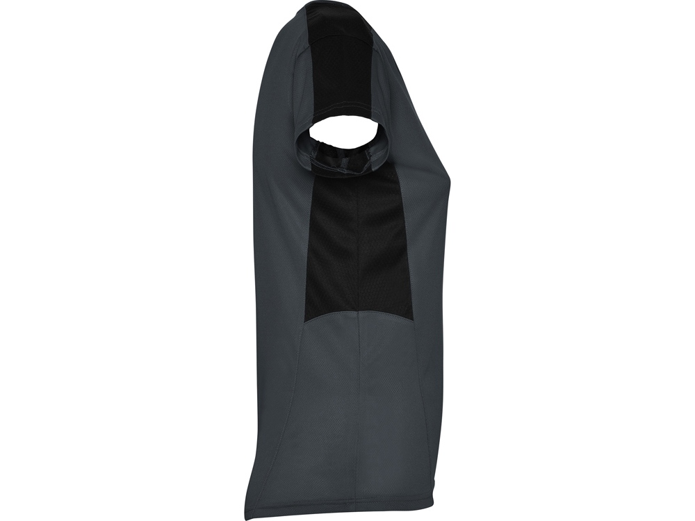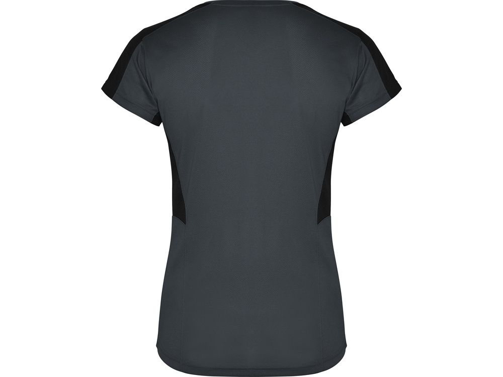 Женская футболка с коротким рукавом. V-образная горловина. Комбинация из 2 полотен контрастного цвета: структурное полотно на полочке и дышащая 3D сетка на плечах и боках. -