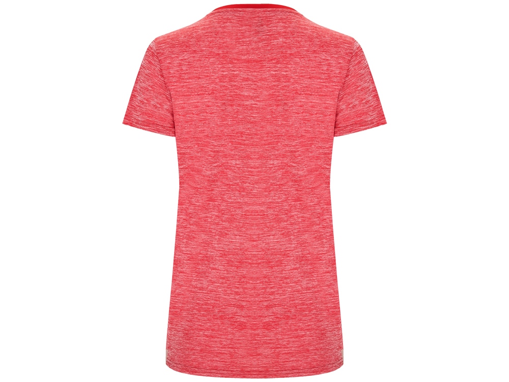 Футболка с коротким рукавом из технологического полотна. Круглый вырез горловины. Комбинация двух полиэстеровых полотен. Основное полотно на полочке со структурой, дополнительное полотно на спинке, рукавах и плечах с меланжевым эффектом. Задняя часть немного длиннее. Легко сохнущее дышащее полотно.