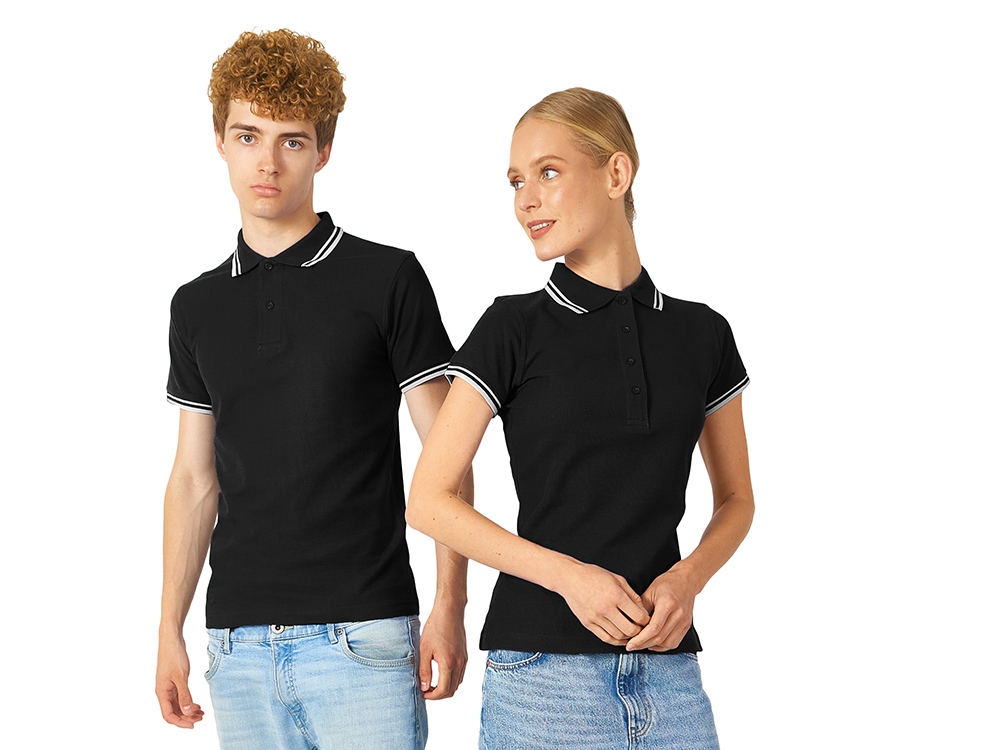 Рубашка-поло Erie с окантовкой. Воротник и манжеты резинка 1х1. Мужская модель с двумя пуговицами, женская - 4 пуговицы в тон изделия. Обшивка внутри воротника. Женская модель с разрезами по бокам. Женская модель приталена. Пике, 100% чесаный хлопок. Плотность 180 г/м2. -