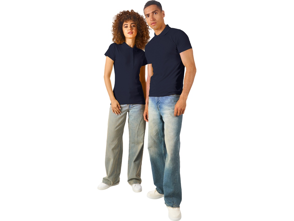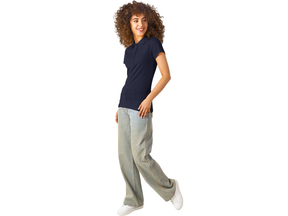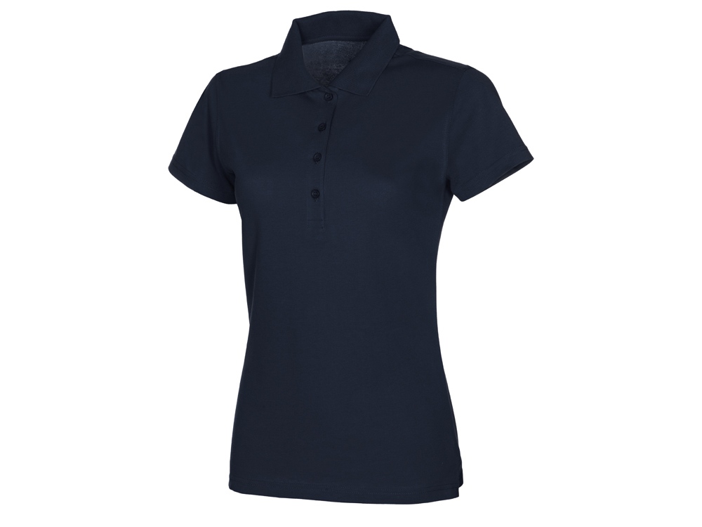 Женская рубашка-поло First. Воротник 1х1. Обшивка внутри воротника. Мужская и детская модели с 2 пуговицами, женская - с 4 пуговицами. Пуговицы с гравировкой в тон. Пике, 100% хлопок. 160 г/м2.