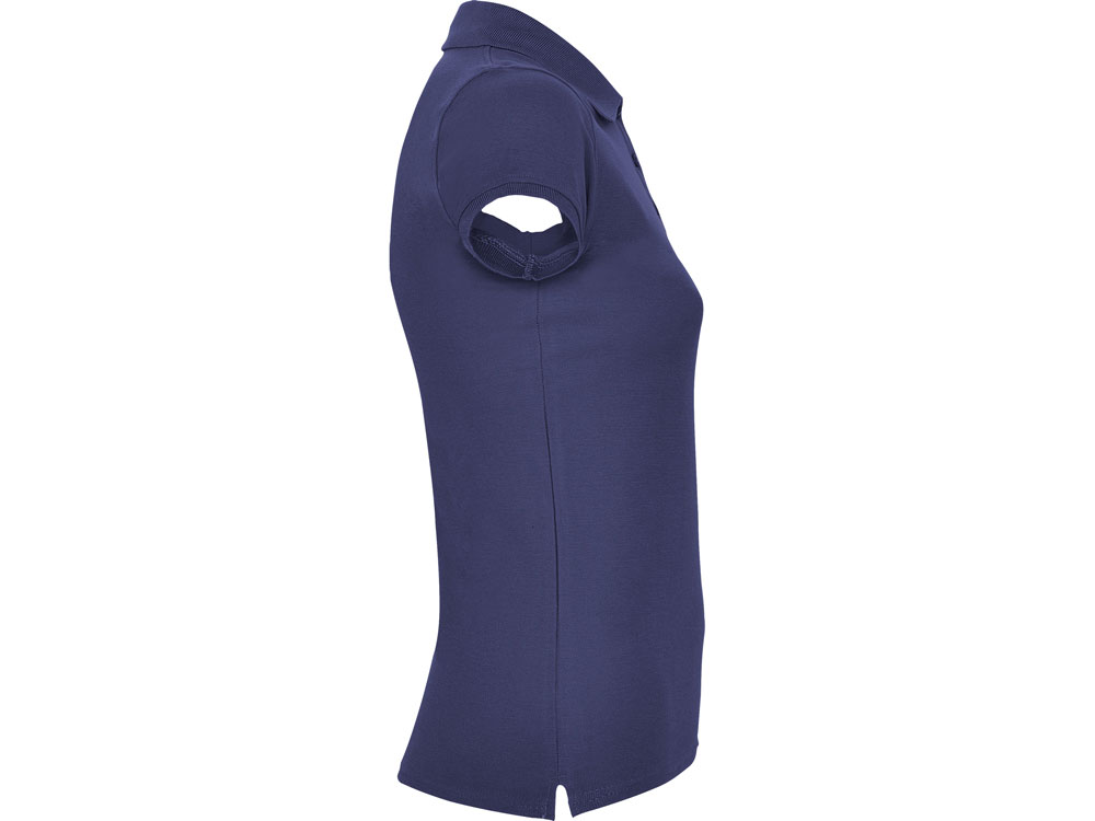 Поло с коротким рукавом для женщин приталенного силуэта. Воротник и манжеты из риба 1х1, отделка горловины внутри тесьмой. Элегантная планка застегивается на 3 пуговицы. Разрезы в боковых швах.