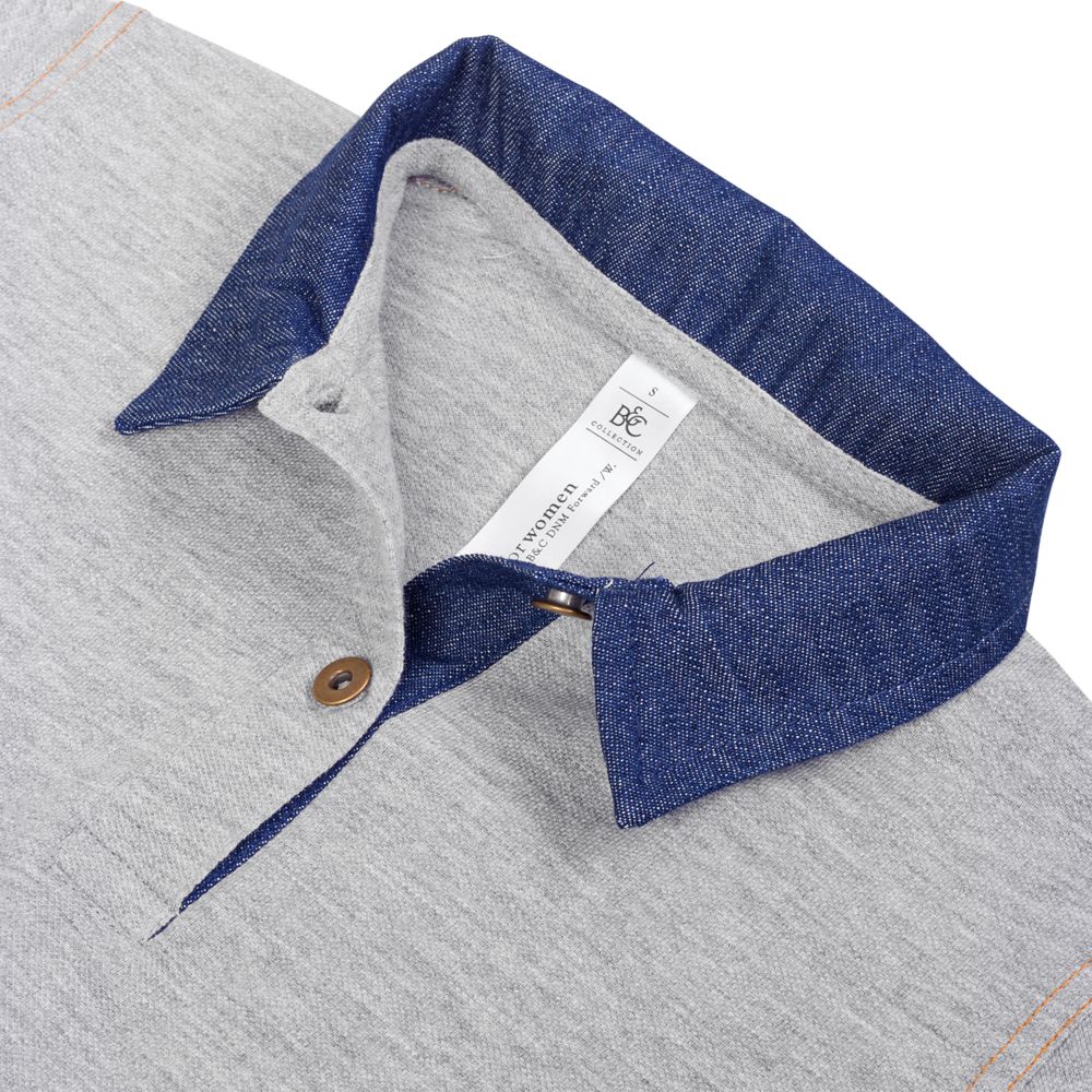 Рубашка поло с джинсовым воротником и контрастной отстрочкой.- Разрезы в боковых швах по низу изделия