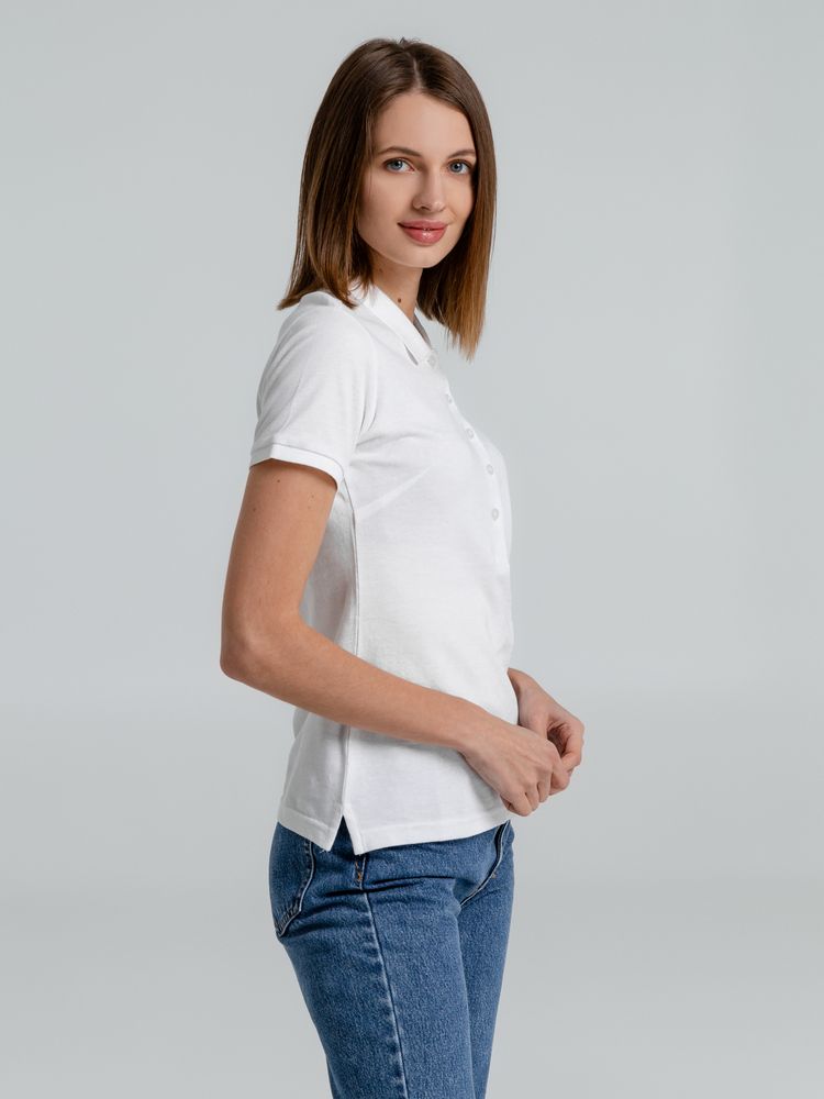 Приталенная женская рубашка поло из гребенного хлопка.- Планка с пуговицами тон в тон