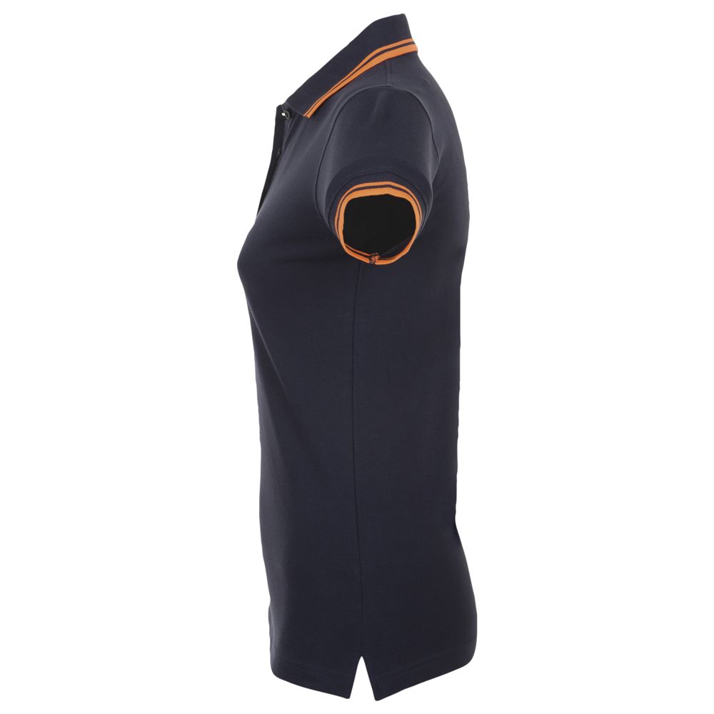 Рубашка поло женская Pasadena Women 200 с контрастной отделкой, темно-синяя (navy) с неоново-оранжевым