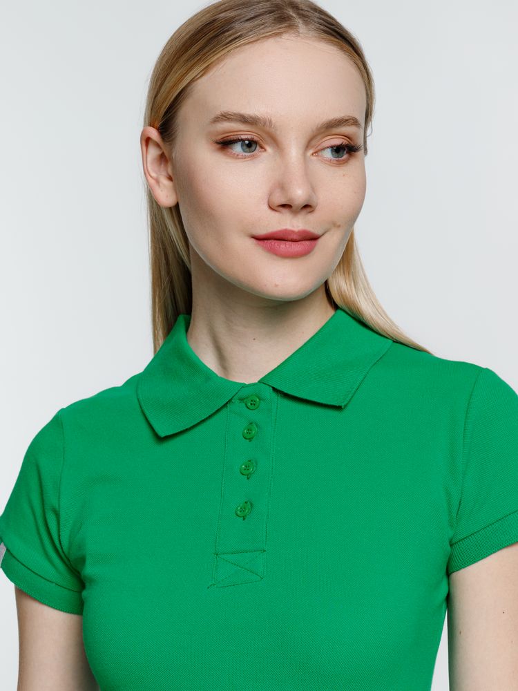 Приталенная женская рубашка поло из гребенного хлопка. Благодаря тонким и длинным волокнам хлопка материал футболки отличается гладкостью, ровностью и прочностью, отлично сохраняет форму, не деформируется и не выцветает при стирке.- Четыре перламутровые пуговицы в тон