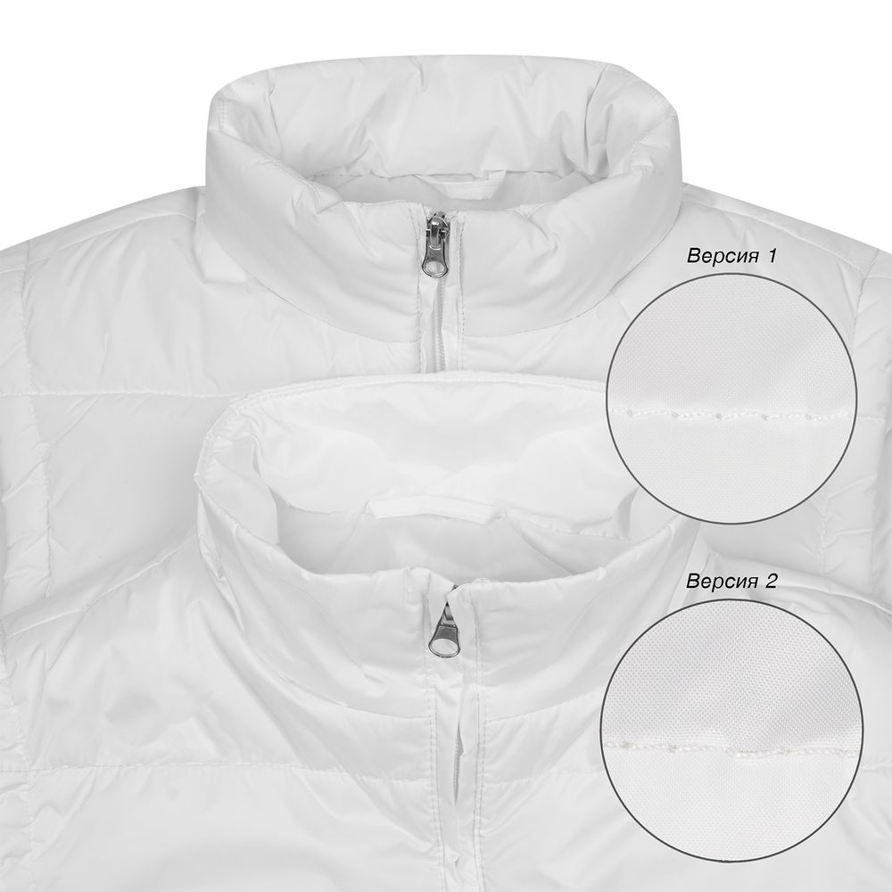 Жилеты представлены в двух версиях. Версия 1 — Произведена в Китае, с более гладким материалом верха. Информация по составу и размеру, а также рекомендации по уходу размещены на ярлыке в боковом шве. Картонная бирка с названием модели крепится на петельку для подвешивания на горловине. Жилеты версии 2 выделены добавлением "v2" к обозначению размера, произведены в России и имеют более рельефную поверхность.Таблица размеров, см XS