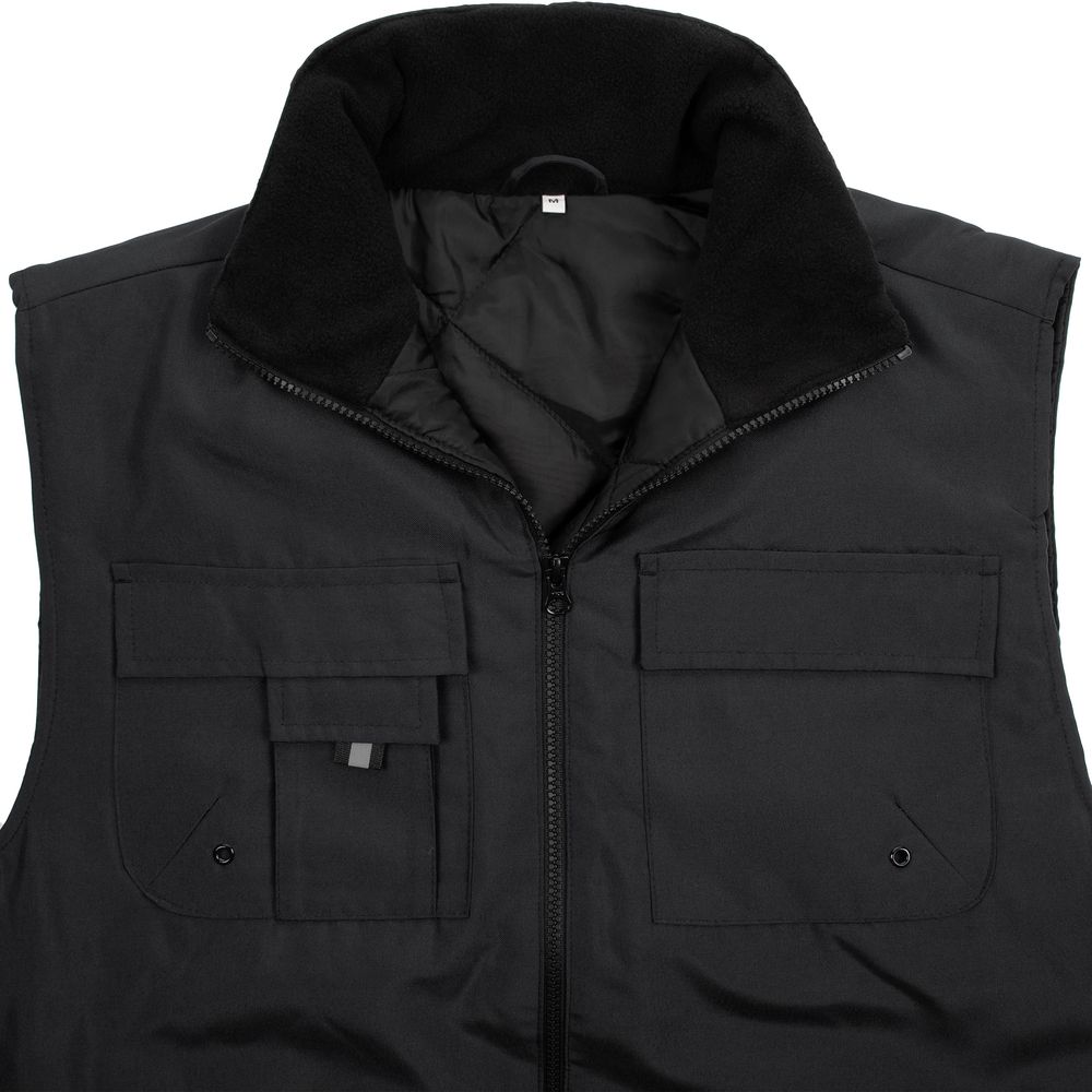 Мужской утепленный жилет с воротником-стойкой и удлиненной спинкой. Выполнен из ткани оксфорд с водоотталкивающим покрытием.- Воротник-стойка на флисовой подкладке