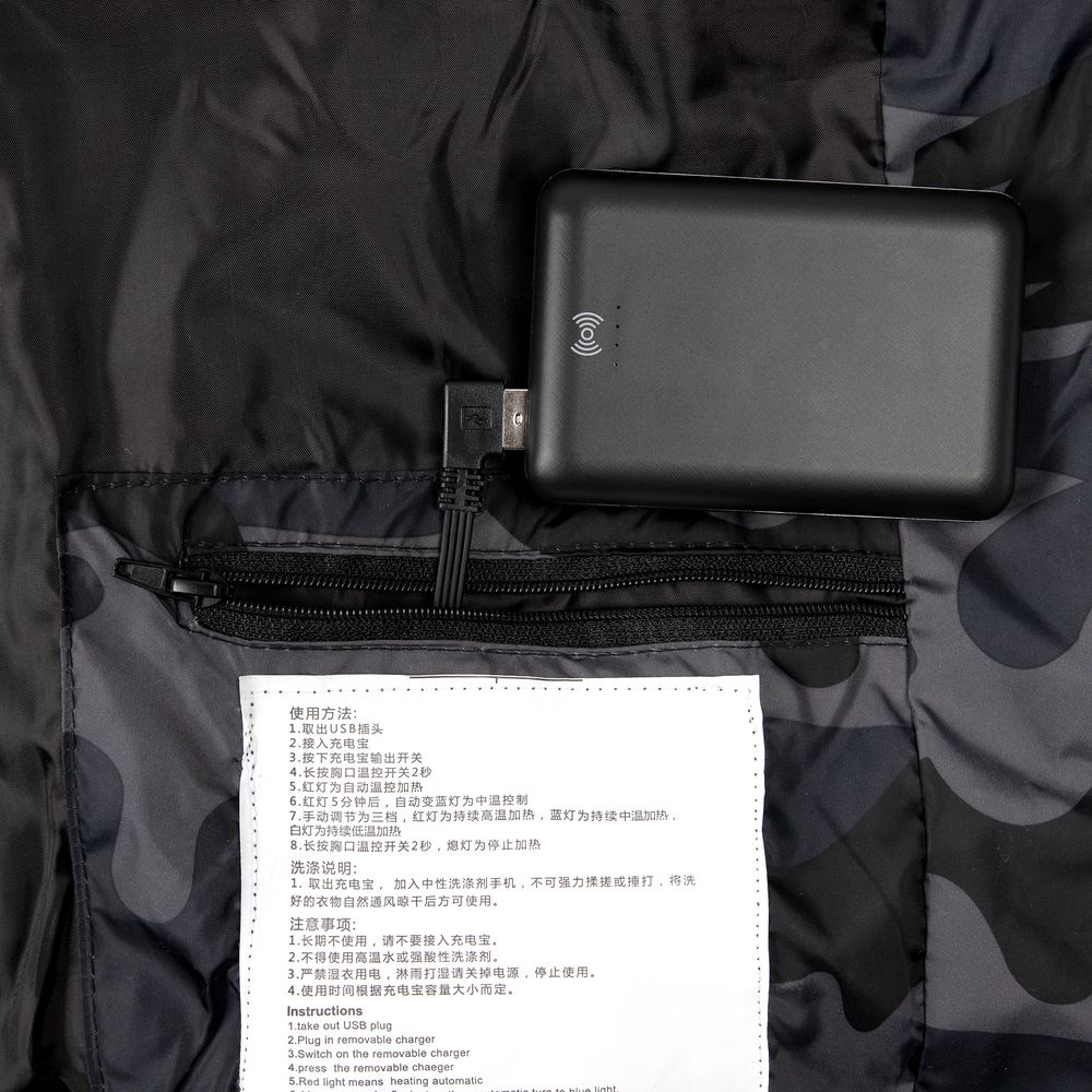 Активация подогрева:1. Подключите внешний аккумулятор к кабелю во внутреннем кармане куртки.