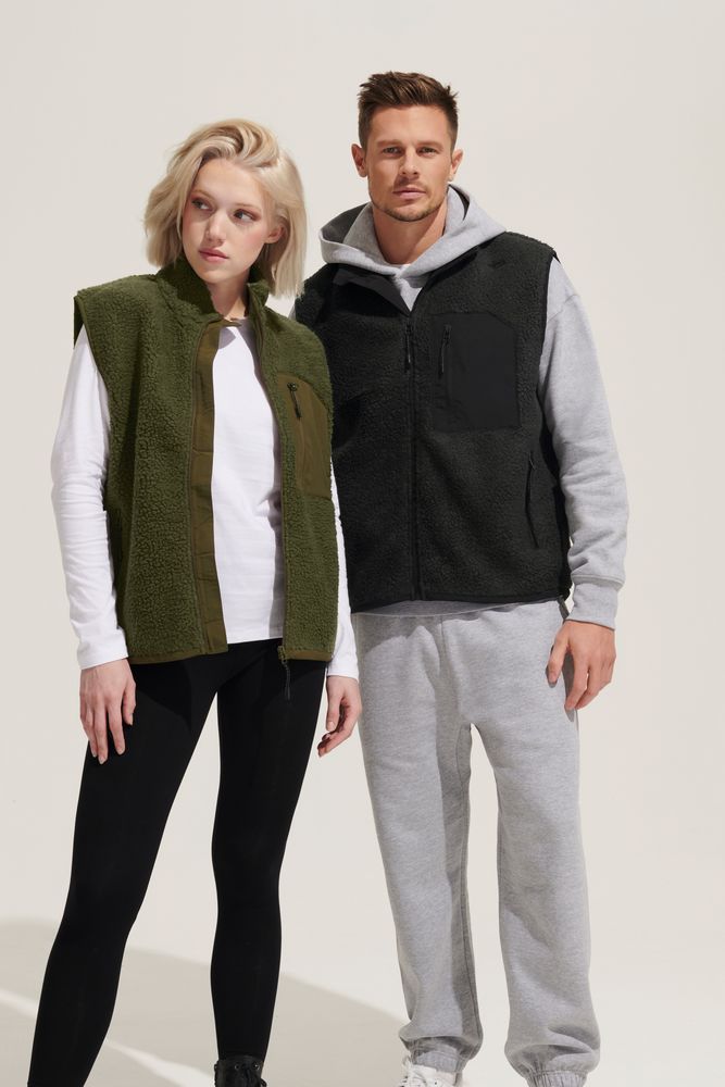 Жилет унисекс из фактурной искусственной шерпы с гладкой отделкой из таслана.- Воротник-стойка