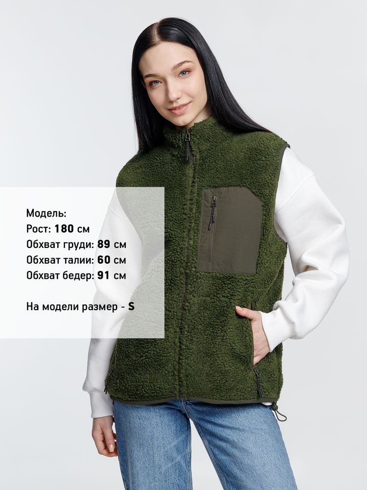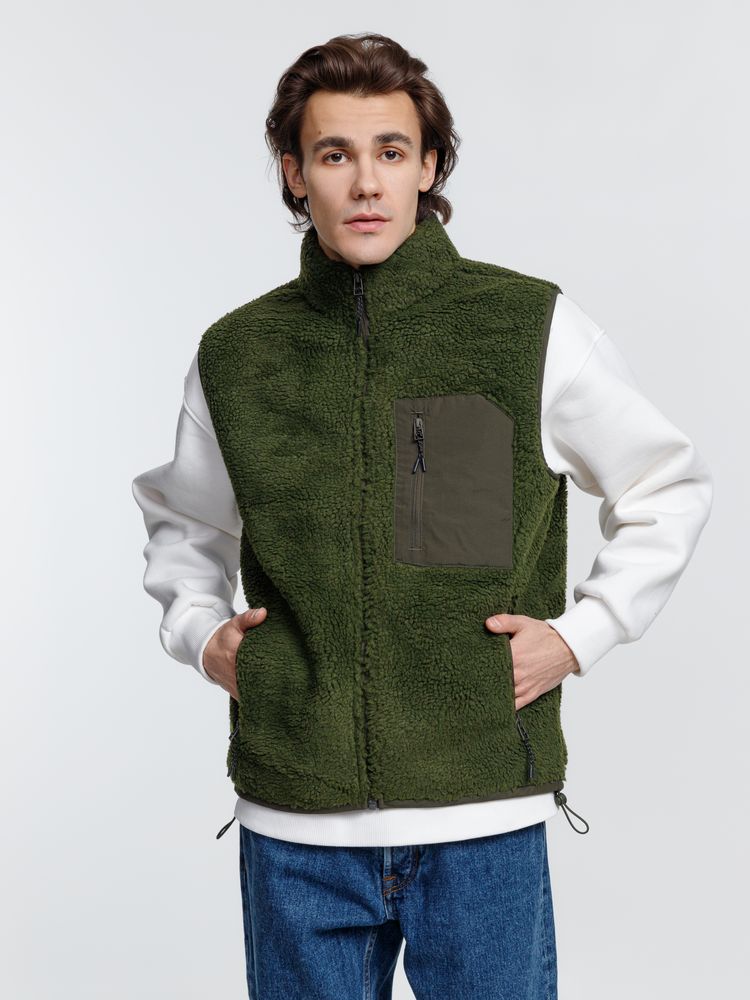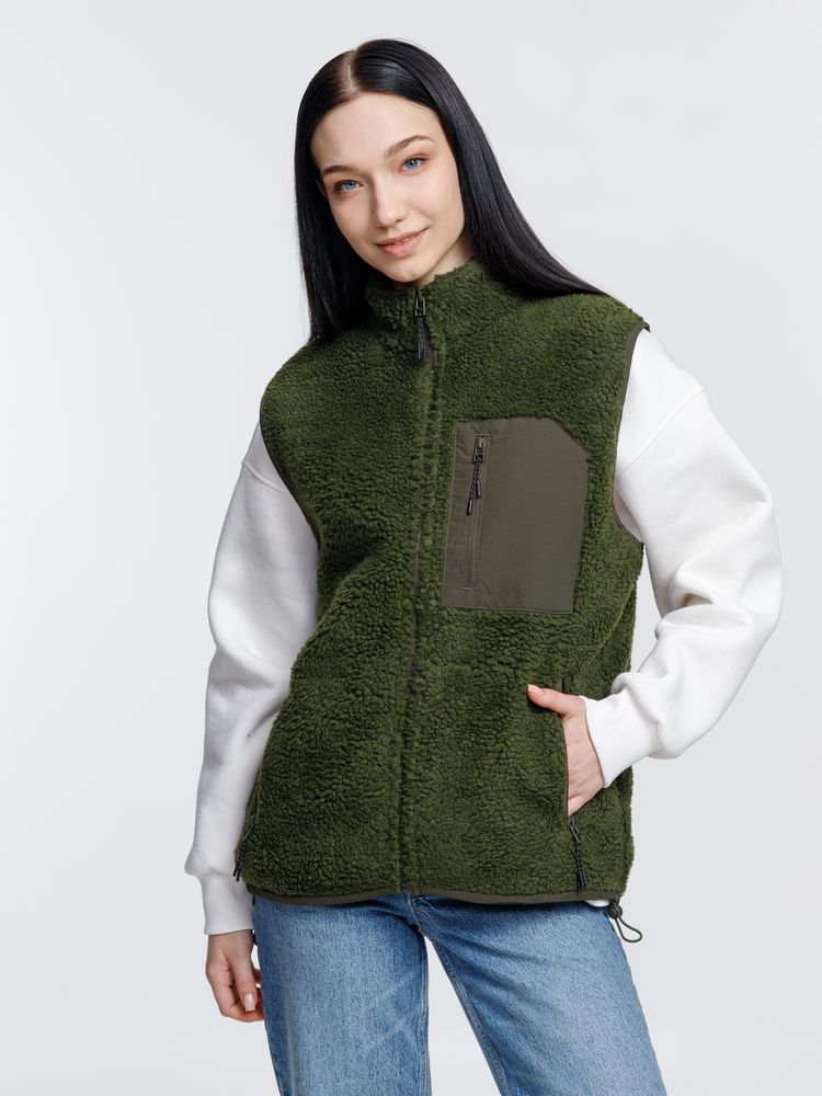 Жилет унисекс из фактурной искусственной шерпы с гладкой отделкой из таслана.- Воротник-стойка