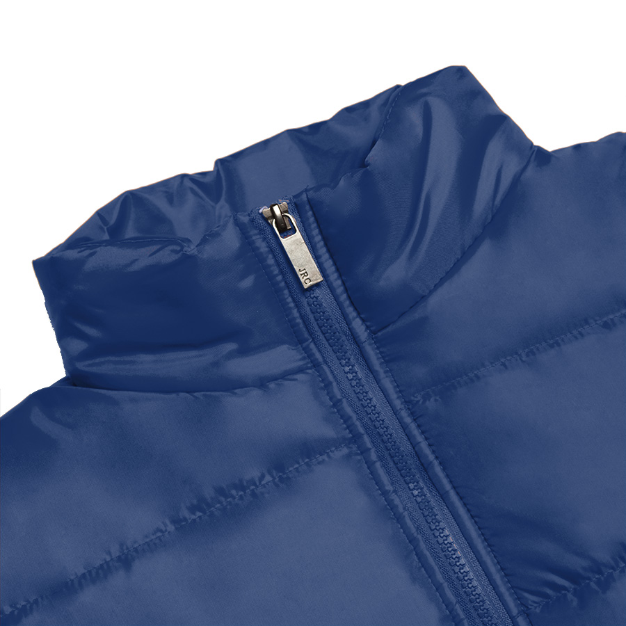 Основная ткань: цвет, близкий к Pantone 293 U, подкладка: цвет, близкий к Pantone Hexachrome Black C Удобный воротник-стойка. Облегченная пластиковая молния с металличесиким брендированным пуллером JRC. Два передних кармана на молнии. Удобный внутренний карман на липучке. -