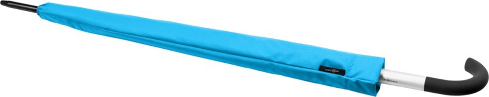 Эксклюзивный автоматический зонт. Металлическая трость и спицы. Специальная ручка, позволяющая вешать зонт на стол. Прорезиненная изогнутая ручка с алюминиевыми деталями. Чехол под цвет зонта. Полиэстер Эпонж. -