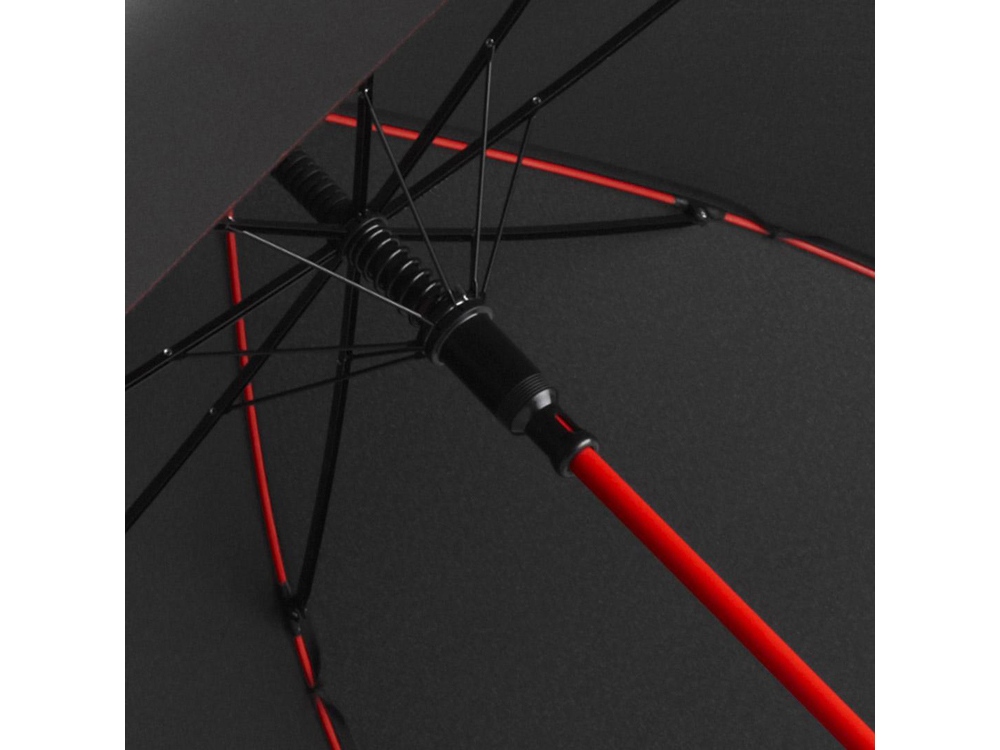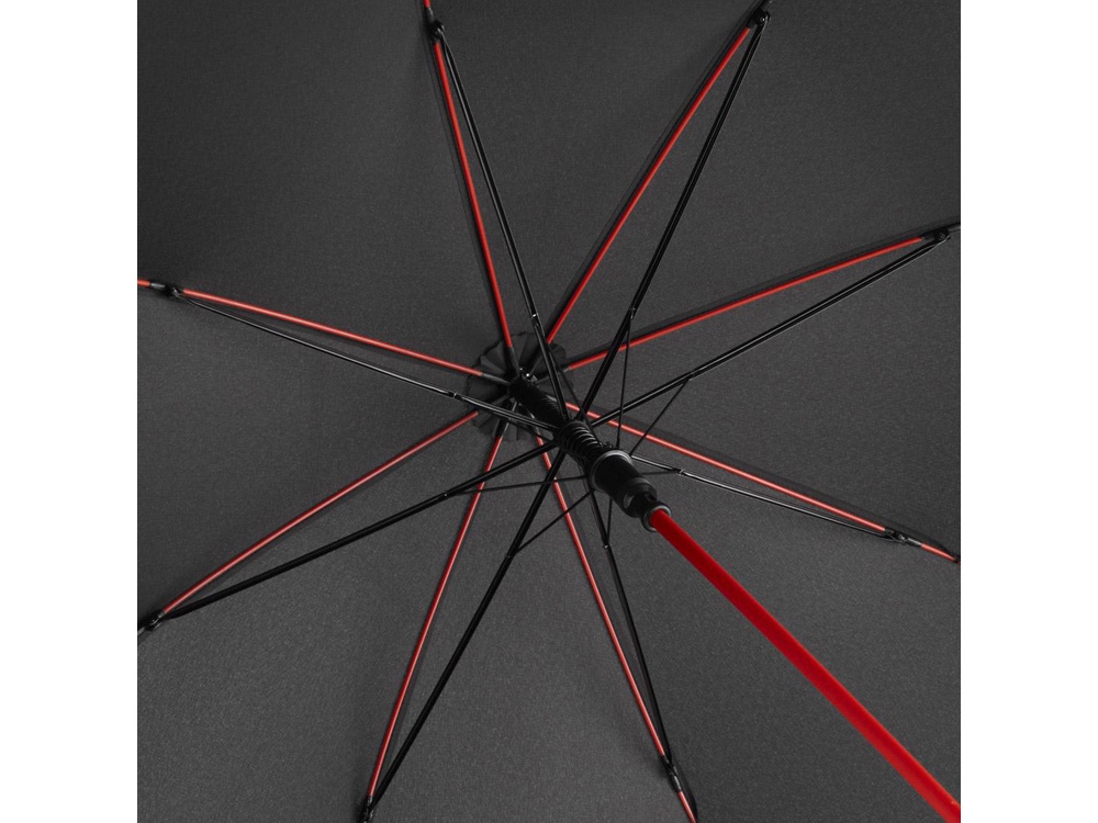Полуавтоматический зонт быстро раскрывается при нажатии кнопки. Контрастные цветные спицы окрашены в тон трости.