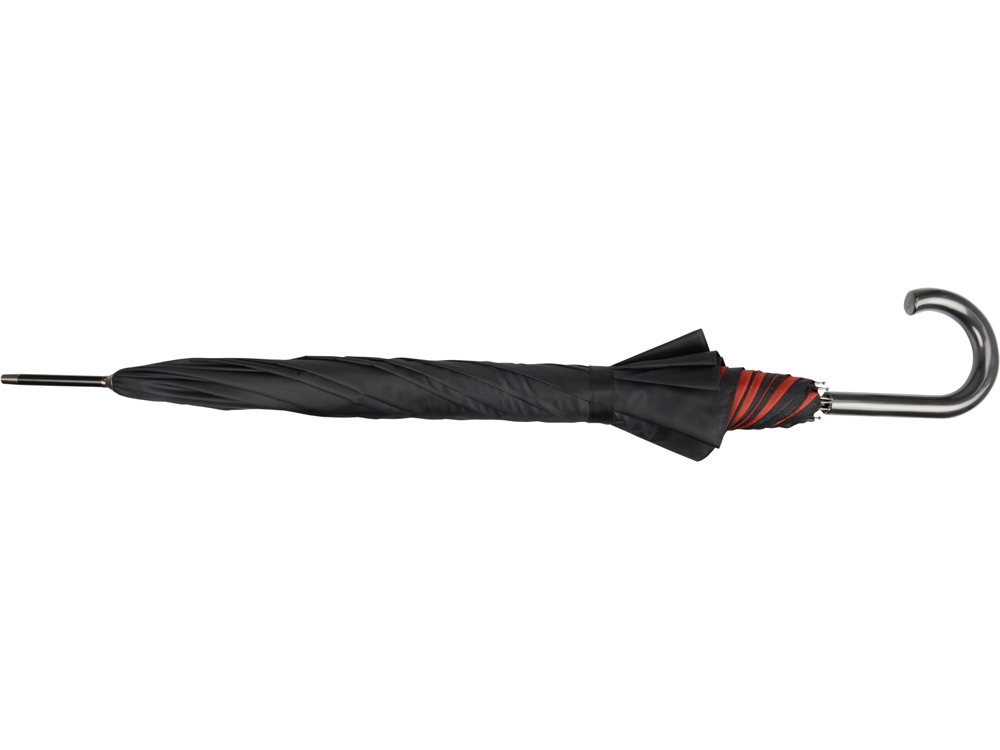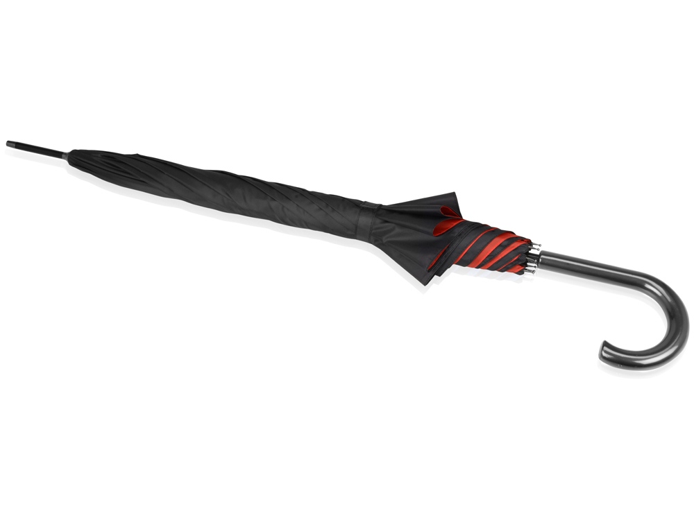 Интересный двухцветный зонт-трость спасет вас от дождя и легкого снега. Внешняя поверхность купола окрашена в черный цвет, а внутренняя имеет яркий, насыщенный оттенок, что непременно привлечет внимание. На купол зонта можно нанести логотип. -