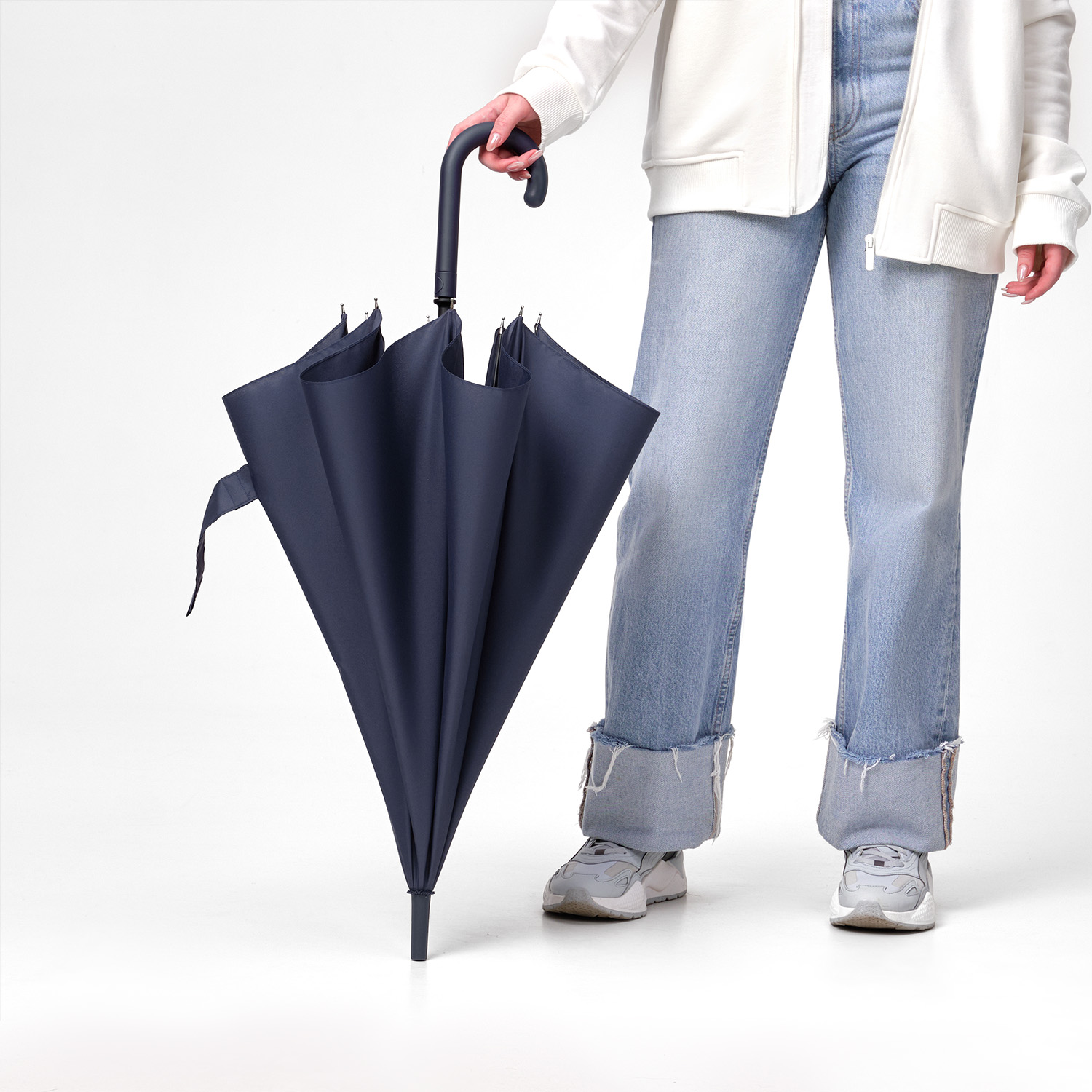 Зонт оснащен системой антиветер, что позволяет спицам не ломаться даже при сильном порыве ветра.