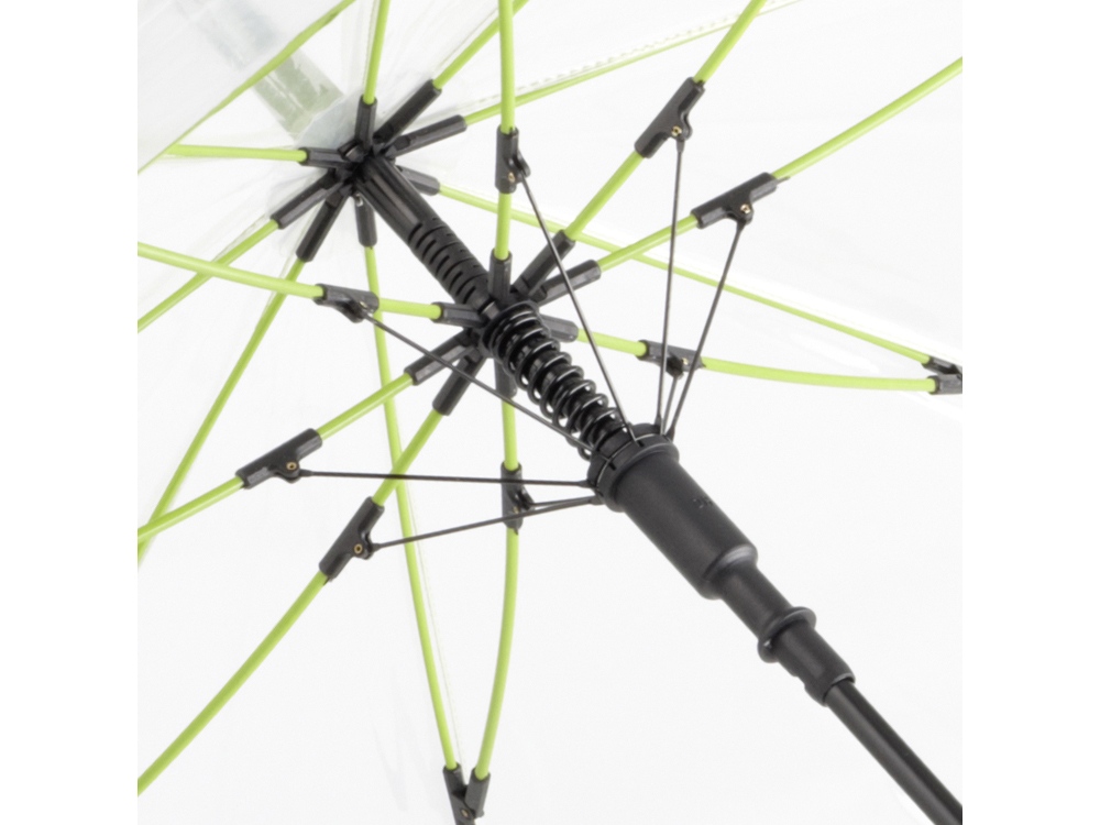 Зонт-трость с прозрачным куполом и контрастными деталями легко открывается нажатием кнопки на ручке. Каркас выполнен из прочной долговечной гальванизированной стали. Благодаря гибким спицам из стекловолокна зонту не страшны порывы ветра. -