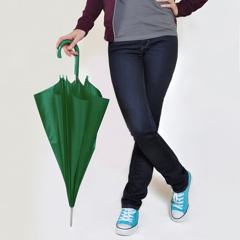 Зонт-трость, механический Диаметр купола: 103 см, длина стержня: 84 см. Состав купола: 100% полиэстер 190T Состав спицы и стержень: металл Пластиковая ручка в цвет купола. Цвет купола близкий к пантону 561 С. -