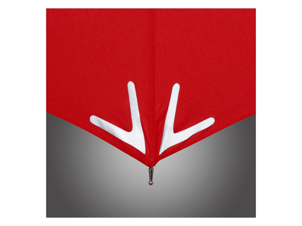Полуавтоматический зонт-трость со светоотражающими элементами на куполе из запатентованного материала 3M™ Scotchlite™ обеспечит дополнительную защиту в темное время суток. В ручку встроен LED фонарик, который работает в двух режимах - постоянный белый свет и мерцающий красный. Батарейка в комплекте. -