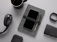 Блокнот Deluxe в твердом переплете из PU с держателем для телефона и ручки, А5