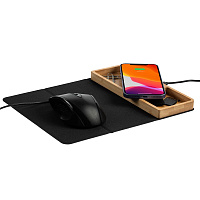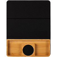 Настольная подставка с беспроводным зарядным устройством, переработанная кожа/бамбук