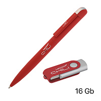 Набор ручка "Jupiter" + флеш-карта "Vostok" 16 Гб в футляре, покрытие soft touch