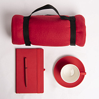Набор подарочный COSINESS: плед, ежедневник, ручка, чайная пара, коробка, красный